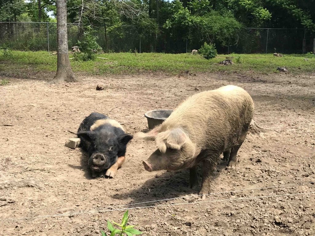 At Alligator Alley, you will see our domestic pigs roaming around or playing in the mud. Unlike the feral hogs we feed to our alligators, our domestic pigs are happy members of the farm family.