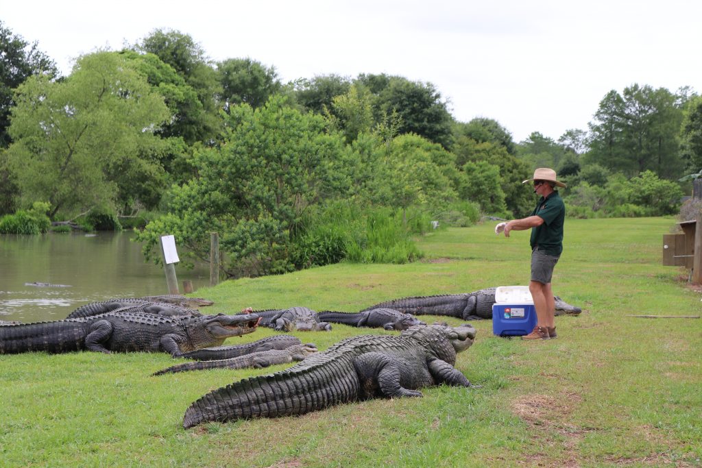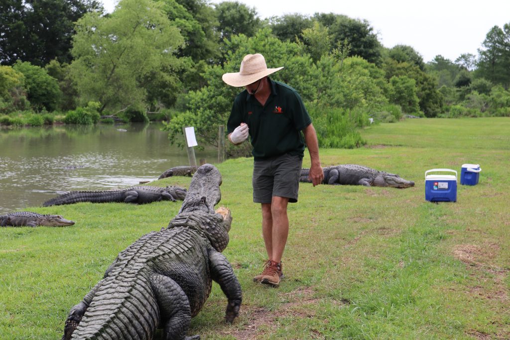 No day is ever the same for all staff members. Most everyone starts the day ensuring the facility is in tip top shape for all of our guests and alligators. Once that is complete, we all break off into our more specific duties, including food preparation, checking the fencing around the property, picking up trash or tree limbs and stocking the souvenir shop. Once those gates open, however, we are solely focused on making sure our guests have the greatest adventure possible at Alligator Alley.