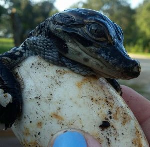 Every year during harvesting season, typically alligator eggs begin to hatch and use their egg tooth to crack open their shell and escape into the world. Once they have emerged from their shells, they immediately begin their search for food and dodge predators along the way.