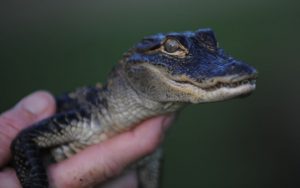 Reptiles do not have sweat glands or sebaceous glands so their skin actually remains cool, dry, and waterproof. The next time you visit Alligator Alley, take advantage of the opportunity to hold a baby alligator – you will certainly notice how dry their skin is!
