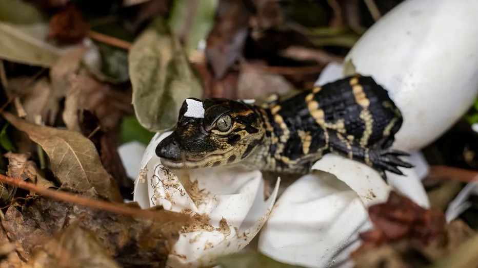 After about 65 days, the baby alligators will hatch in mid-August or early September. The mother alligator stays with her young for up to two years after they hatch, protecting them from predators and teaching them how to hunt and survive in the wild.